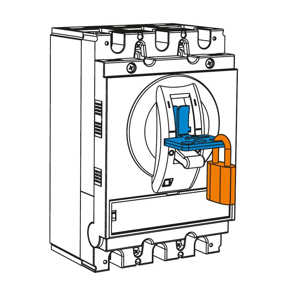 Блокировка рукоятки в отключенном состоянии навесным замком PLL T400-T630 для выключателя в литом корпусе OptiMat T