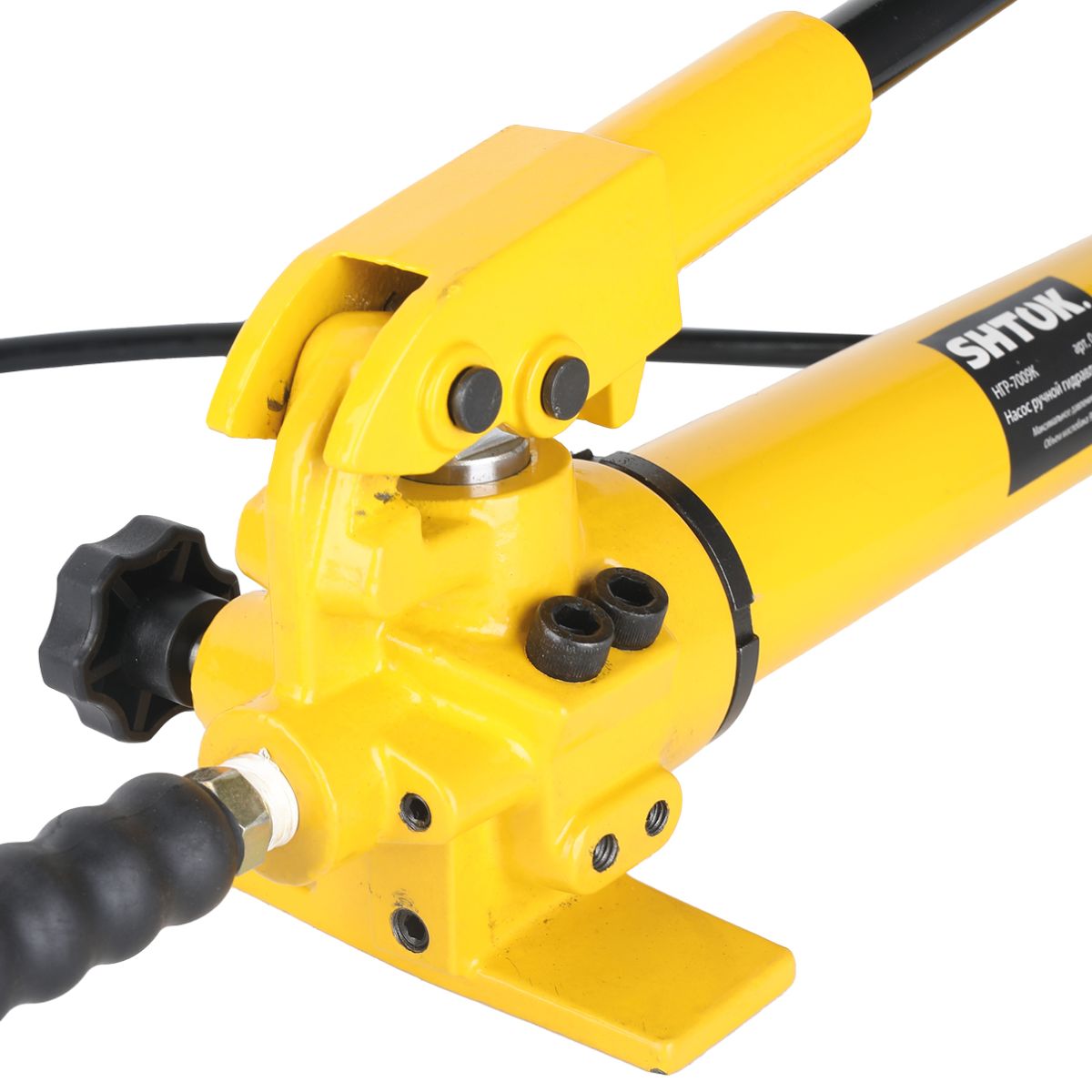 Гидравлический ручной насос НГР-7009К SHTOK 04003 предназначен для подключения прессов Шток. Насос развивает давление в 700 бар, имеет предохранительный клапан и длинный рукав в комплекте. Ручной привод обеспечивает независимость установки от внешних источников энергии. Двухплунжерная нагнетательная система гарантирует эффективность применения насоса.