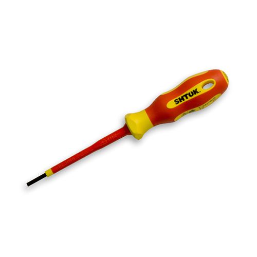 Диэлектрическая отвертка SL 0.4x2.5х75 мм SHTOK 09310 для работ с крепежом, электроизолирована до 1000V.