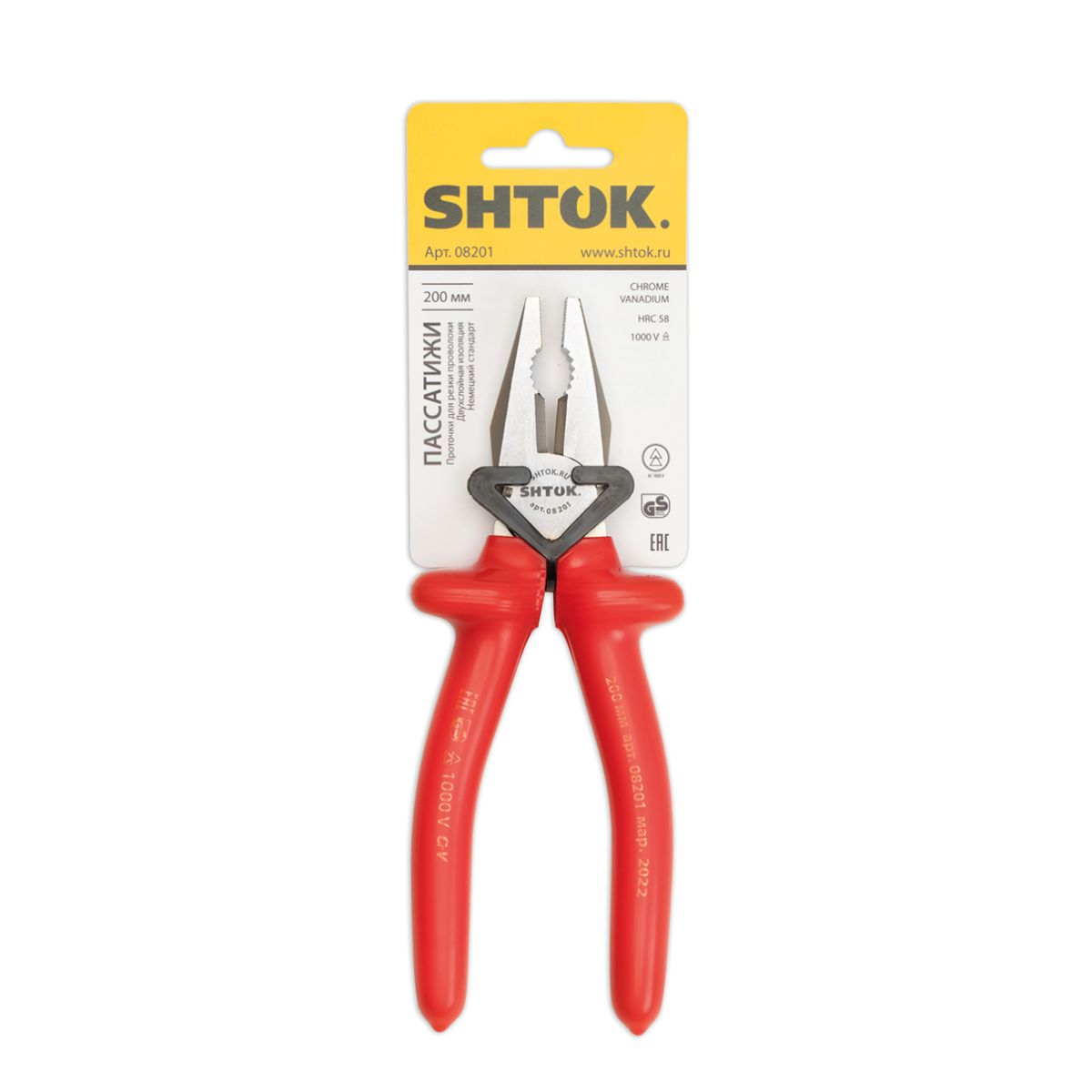 Диэлектрические пассатижи SHTOK 1000В 200 мм 08201 оснащены рабочей частью из хром-ванадиевой стали. Рукоятки инструмента выполнены со специальными упорами. Пассатижи предназначены для работ под напряжением пока не поврежден верхний красный слой рукояток.