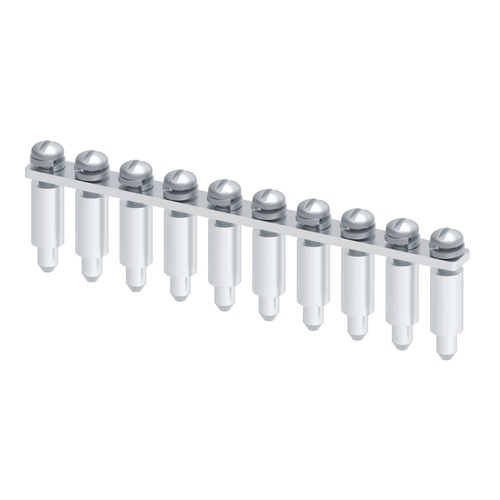 Винтовая перемычка для винтовых клемм OptiClip CTS-2,5. Винтовая перемычка состоит из токоведущей шины, втулок и винтов и представляет из себя готовое изделие для применения. Перемычка подключается при помощи встроенного винта к клемме через отверстие в середине клеммы. Количество полюсов: 2, 3, 4, 10.