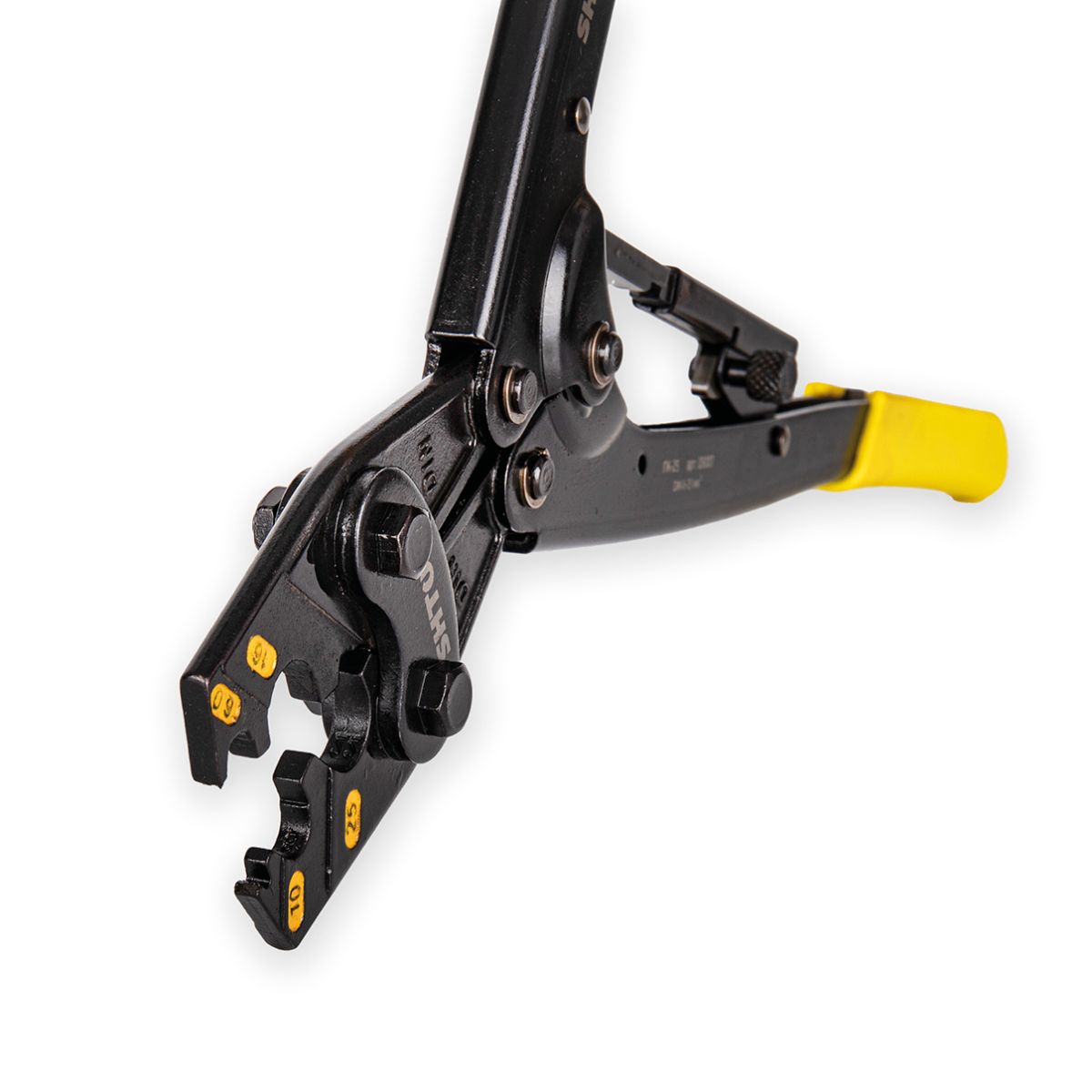 Ручные пресс-клещи SHTOK ПК-25 03007 предназначены для опрессовки наконечников. По окончанию работы происходит автоматическая разблокировка инструмента. Данная модель предназначена для малых и средних сечений.