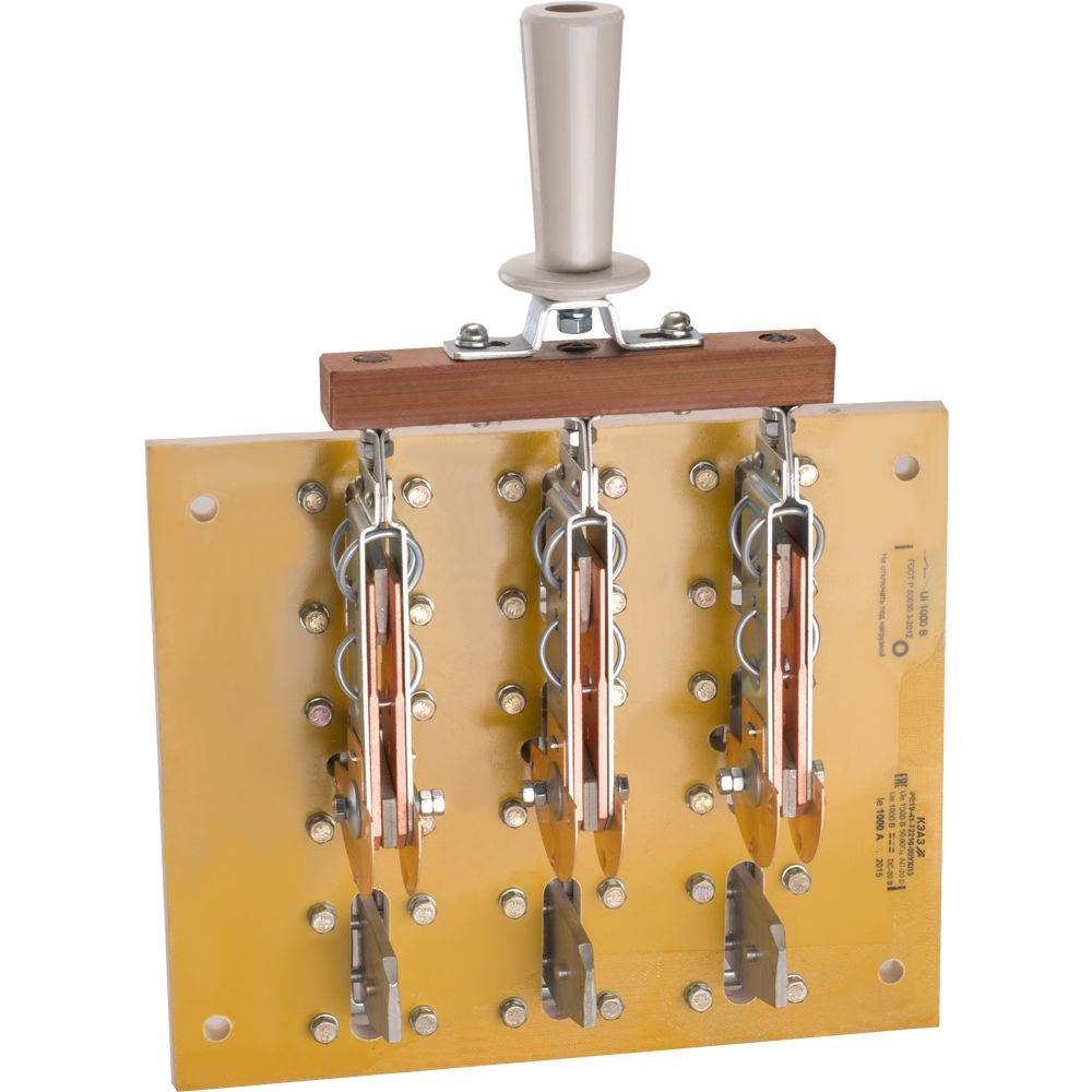 Разъединитель 3 полюсный на номинальный ток 1000 А, где установлена съемная рукоятка, а механическая износостойкость составляет 6300 циклов.