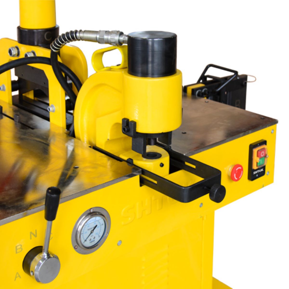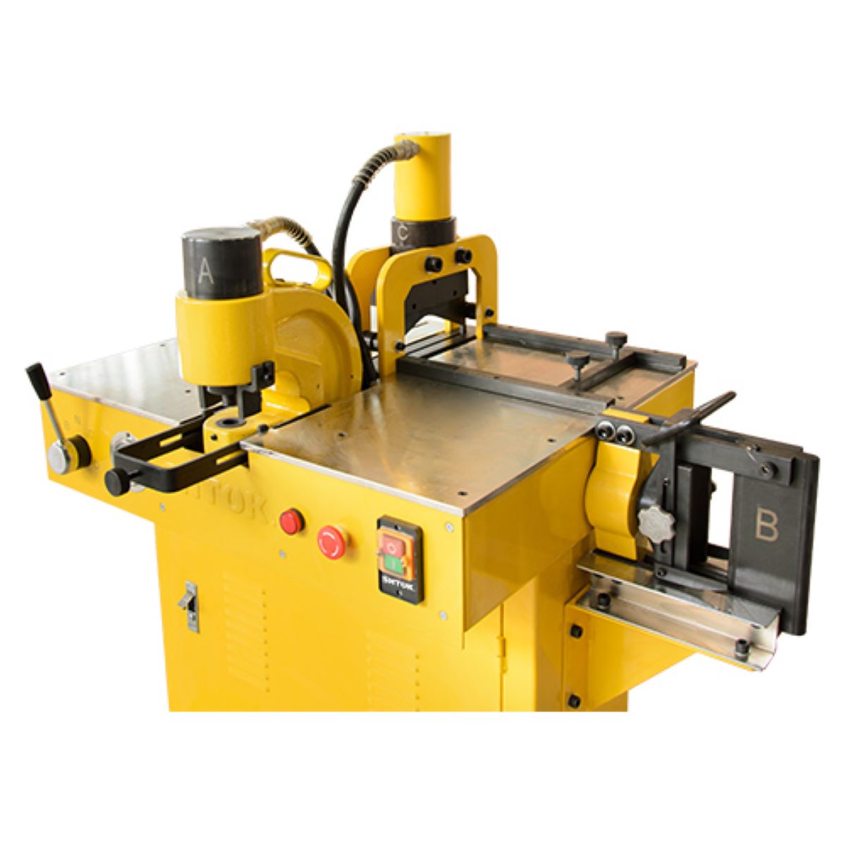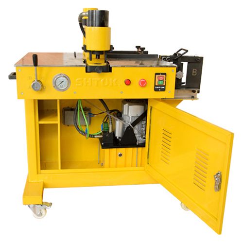 Шинообрабатывающий станок 3в1 SHTOK СРШ-150M 21003 предназначается для гибки, резки, а также перфорации токоведущих шин. Максимальная толщина обрабатываемой шины составляет 12 мм, а максимальная ширина - 150 мм. Устройство быстро и легко перемещается по рабочей площадке благодаря роликовым колесам со стопорным механизмом. Все элементы управления вынесены на боковую панель, что обеспечивает удобство в эксплуатации. Кнопка аварийной остановки позволяет незамедлительно отключить модель в случае возникновения непредвиденной ситуации. На корпусе имеется множество вентиляционных отверстий для эффективного охлаждения внутренних углов. Станок не требует сложного технического обслуживания и прослужит длительное время.