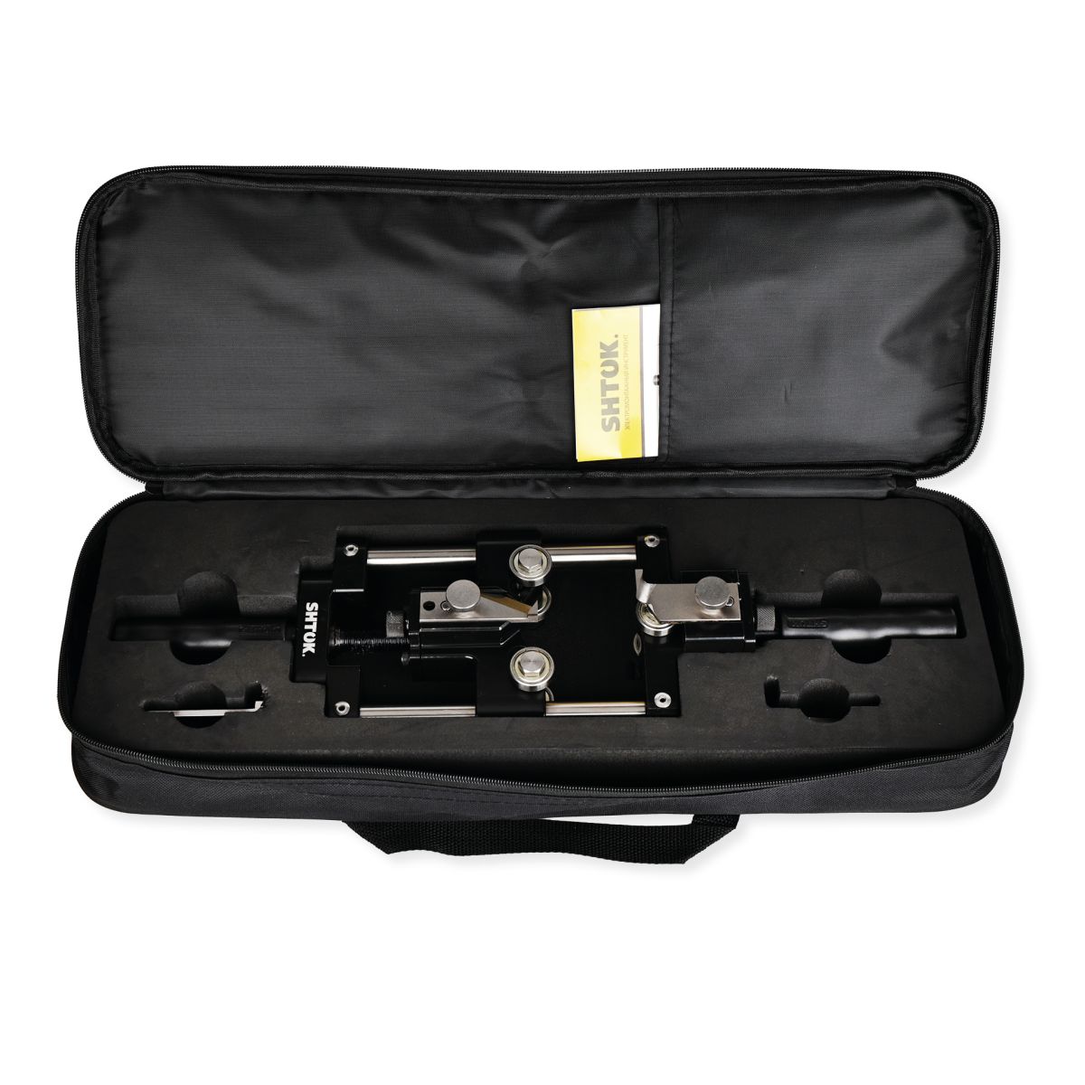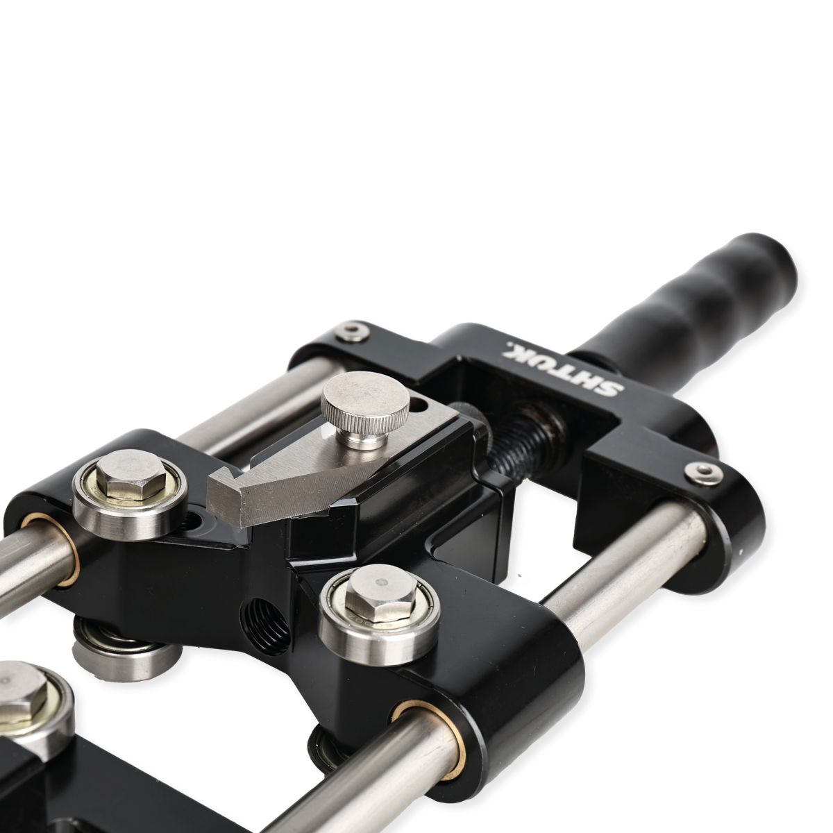 Инструмент для снятия изоляции из сшитого полиэтилена SHTOK СИ-90 06004 справится с кабелями диаметром до 90 мм. С помощью регулировочного винта и фиксатора можно закрепить режущий нож для осевой либо радиальной резки, углубив его в материал кабельной изоляции на необходимую глубину. Инструмент изготовлен из качественных материалов и прослужит долгое время без сбоев.