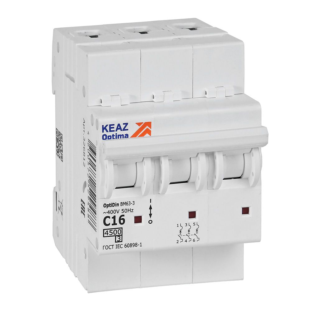 Читать все статьиKEAZ Выключатель автоматический модульный OptiDin BM63-3C16-4,5-УХЛ3