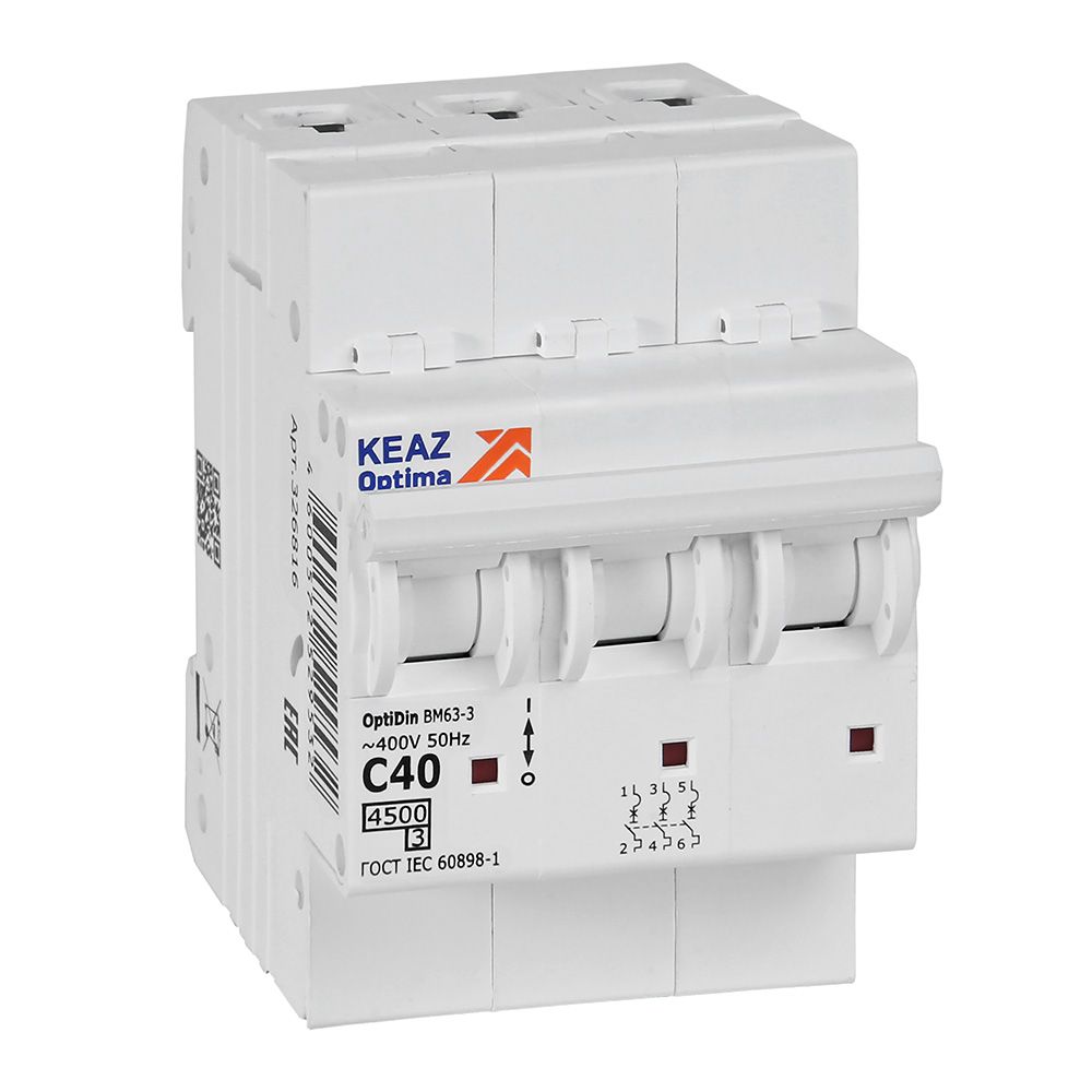 Читать все статьиKEAZ Выключатель автоматический модульный OptiDin BM63-3C40-4,5-УХЛ3