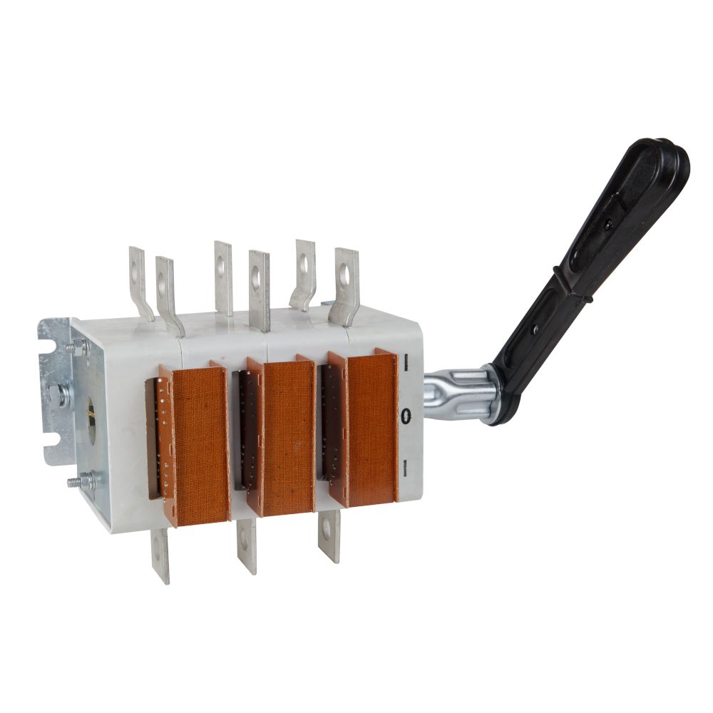 Выключатель-разъединитель 3 полюсный на номинальный ток 250 А, в котором установлена съемная рукоятка.