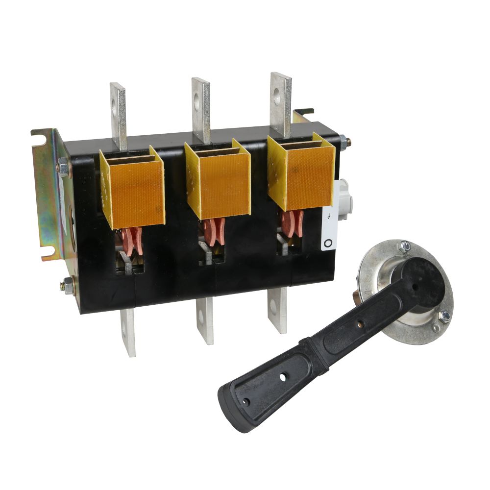 Выключатель-разъединитель 3 полюсный на номинальный ток 630 А, в котором установлена съемная рукоятка.