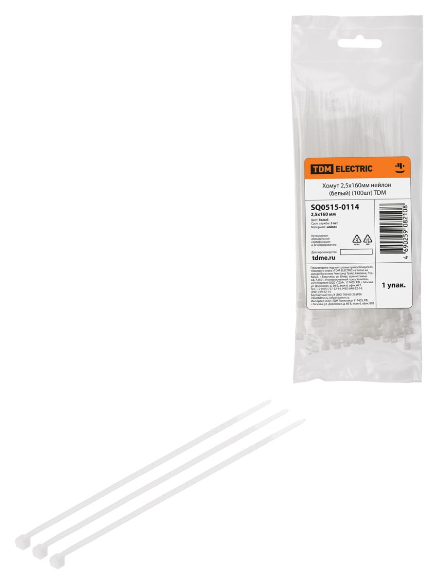 Читать все статьиХомут 2,5х160мм нейлон (белый) (100шт) TDM