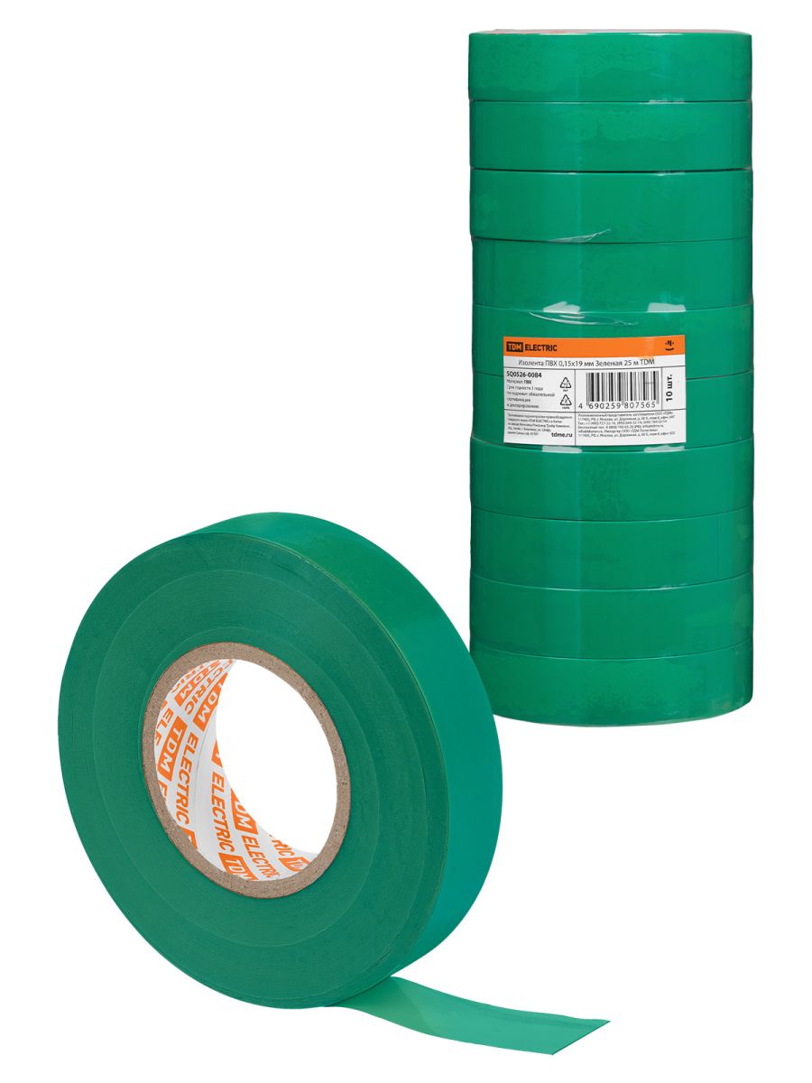 Изолента ПВХ 0,15х19 мм Зеленая 25 м TDM