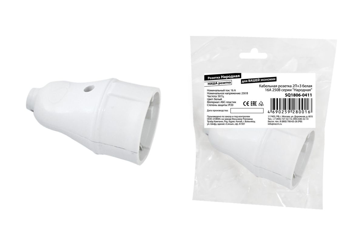 Читать все статьиКабельная розетка 2П+З белая 16А 250B серии «Народная»