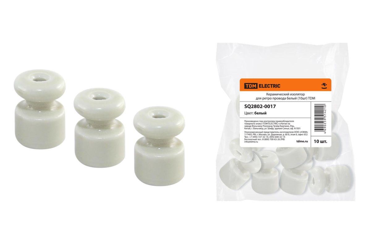 Керамический изолятор для ретро провода белый (10шт) TDM