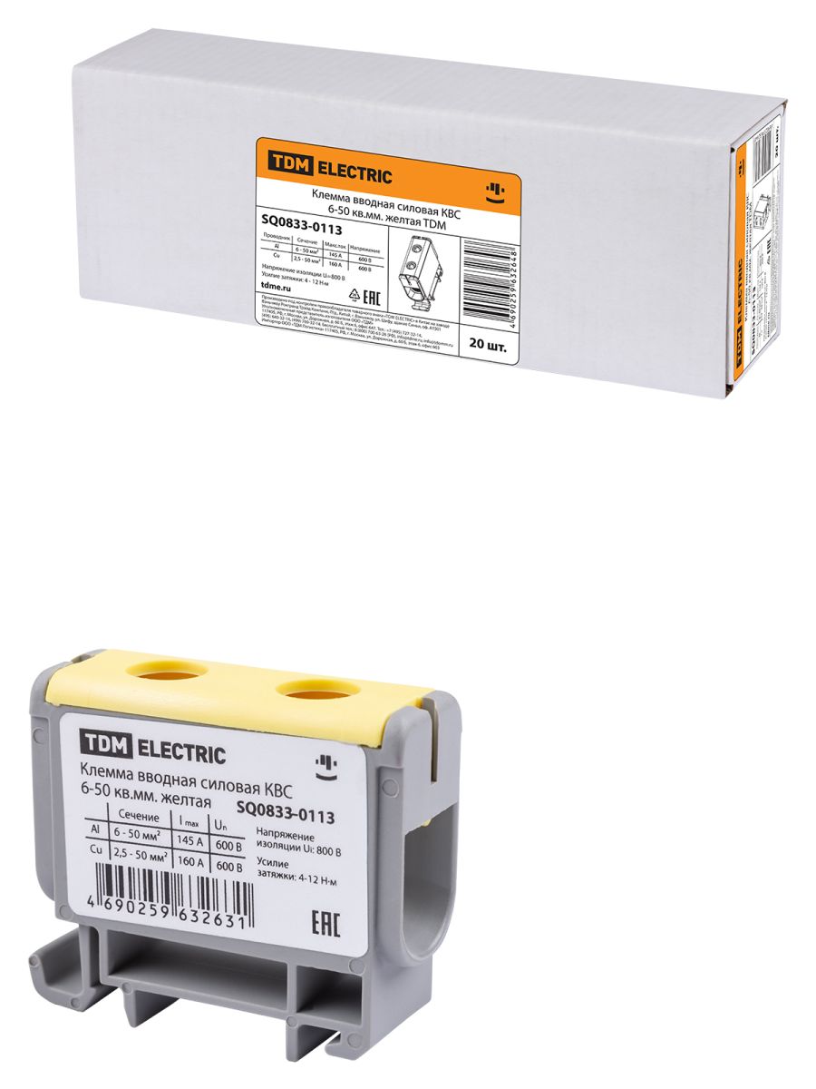 Клемма вводная силовая КВС 6-50 кв.мм. желтая TDM