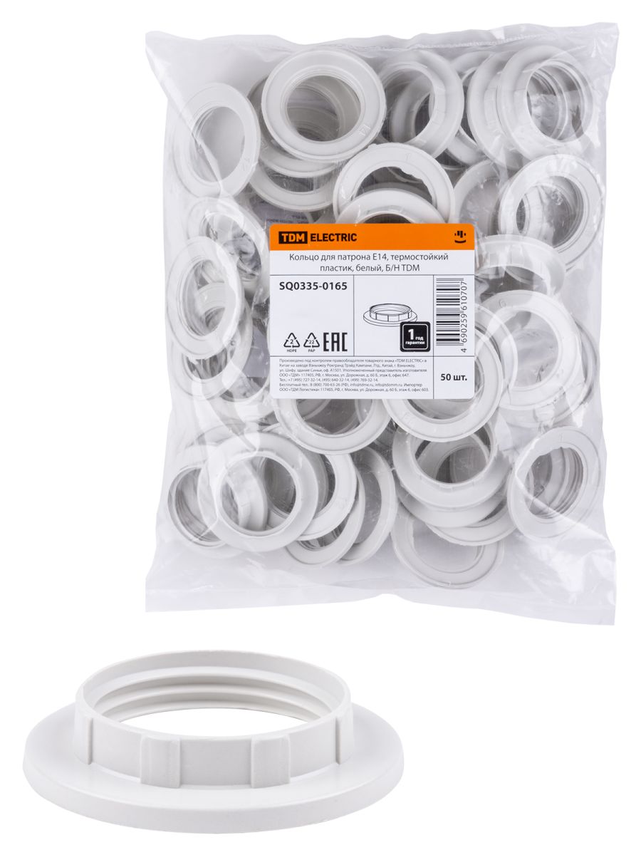 Кольцо для патрона Е14, термостойкий пластик, белый, Б/Н TDM