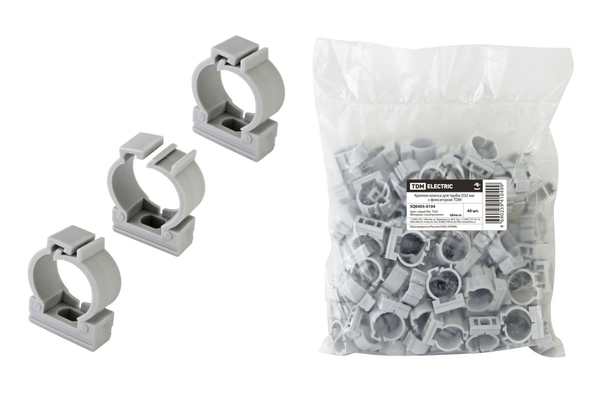 Читать все статьиКрепеж-клипса для трубы D32 мм с фиксатором TDM