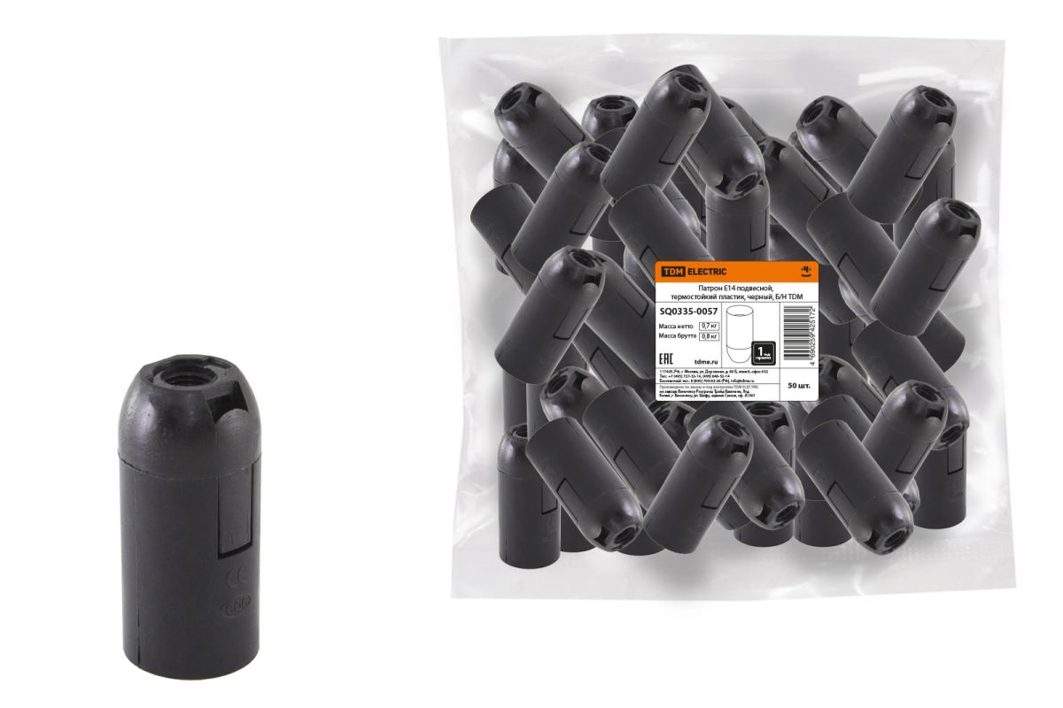 Патрон Е14 подвесной, термостойкий пластик, черный, Б/Н TDM