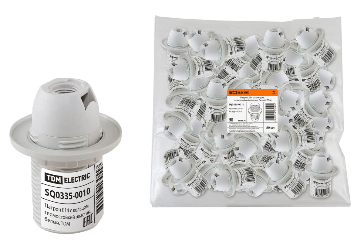 Читать все статьиПатрон Е14 с кольцом, термостойкий пластик, белый, TDM