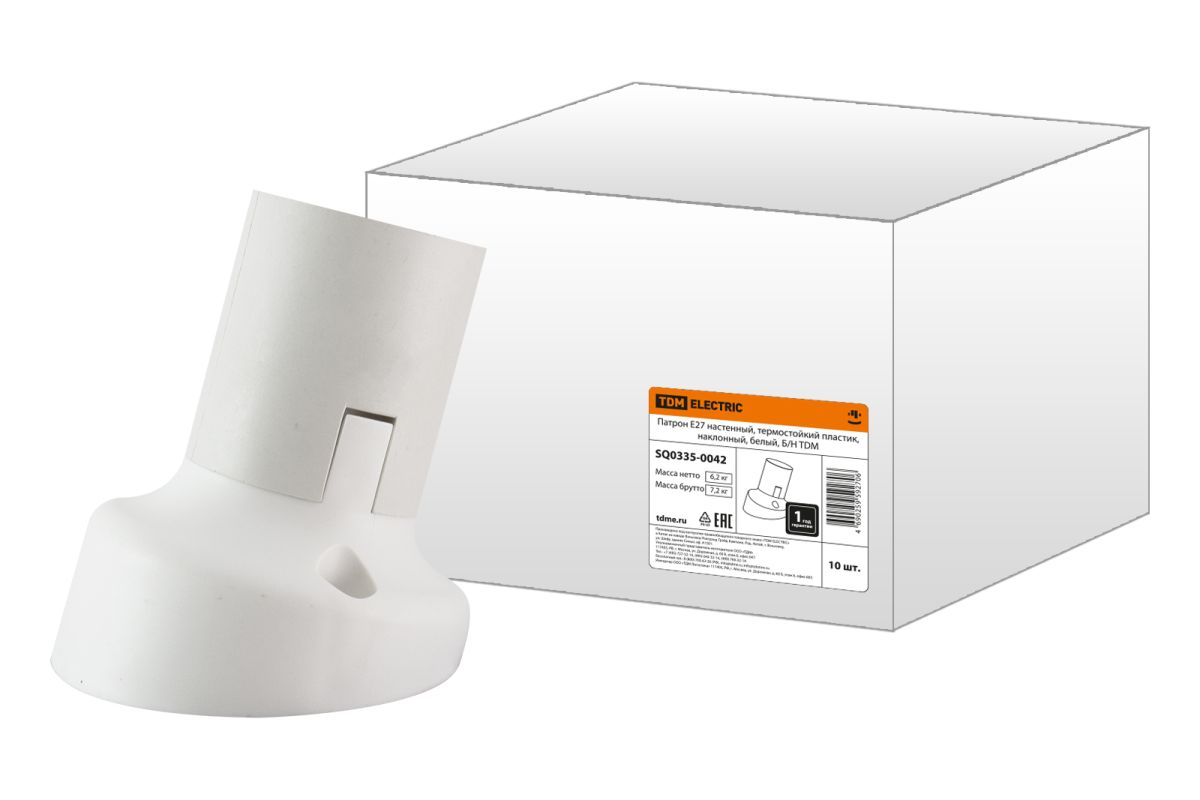 Патрон Е27 настенный, термостойкий пластик, наклонный, белый, Б/Н TDM