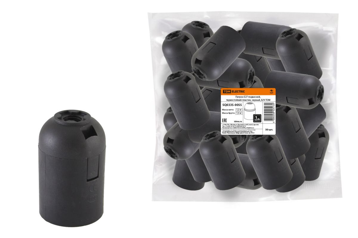 Патрон Е27 подвесной, термостойкий пластик, черный, Б/Н TDM