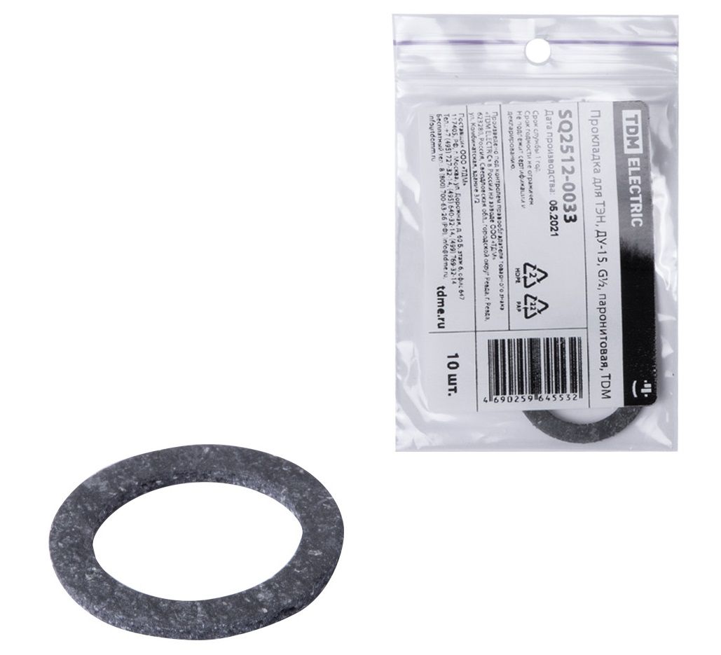 Прокладка для ТЭН, ДУ-15, G½, паронитовая, TDM