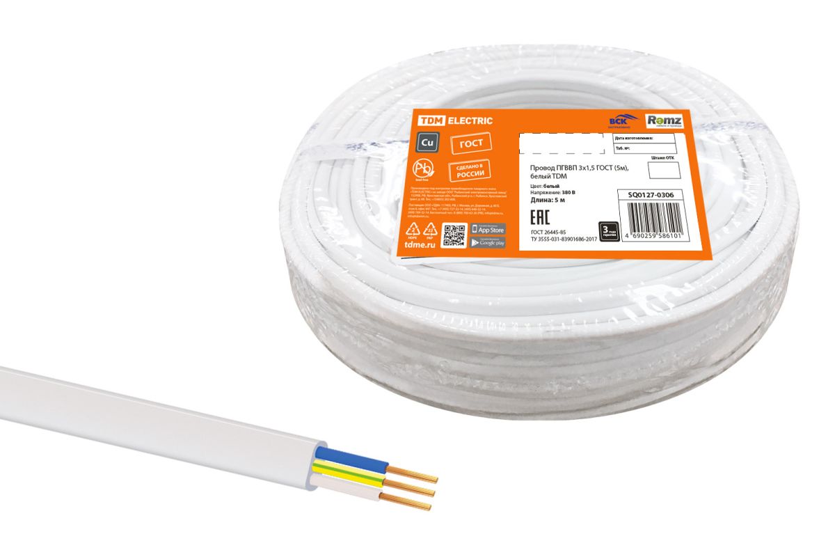 Провод ПГВВП 3х1,5 ГОСТ (5м), белый TDM
