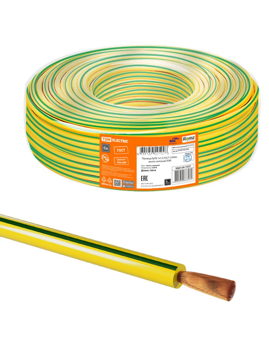 Читать все статьиПровод ПуГВ 1х1,5 ГОСТ (100м), желто-зеленый TDM
