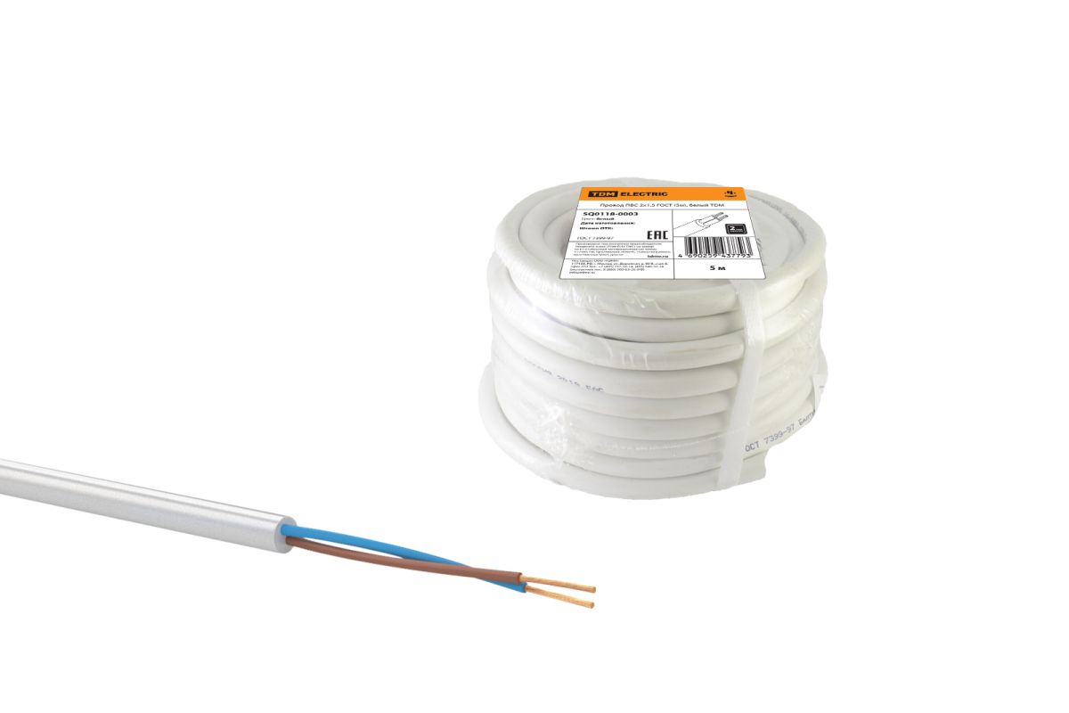 Провод ПВС 2х1,5 ГОСТ (5м), белый TDM