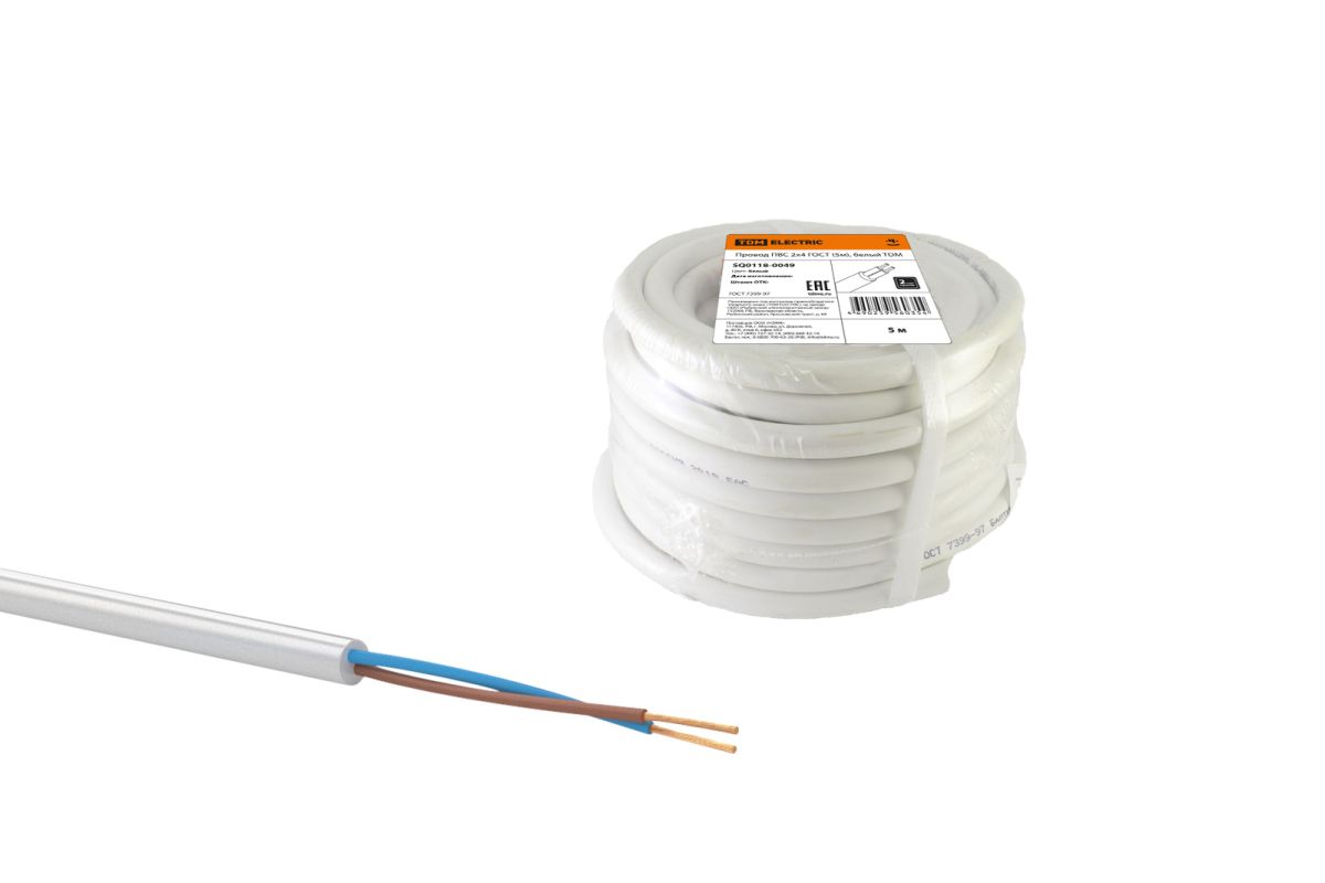 Провод ПВС 2х4 ГОСТ (5м), белый TDM