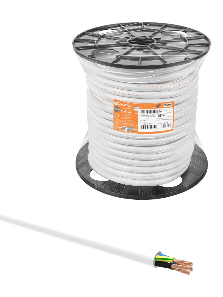 Провод ПВС 4х1,5 ГОСТ на катушке (50м), белый TDM