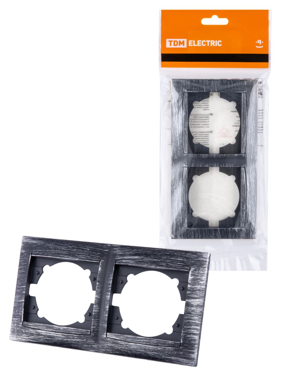 Рамка 2-х постовая горизонтальная старинное серебро «Лама» TDM