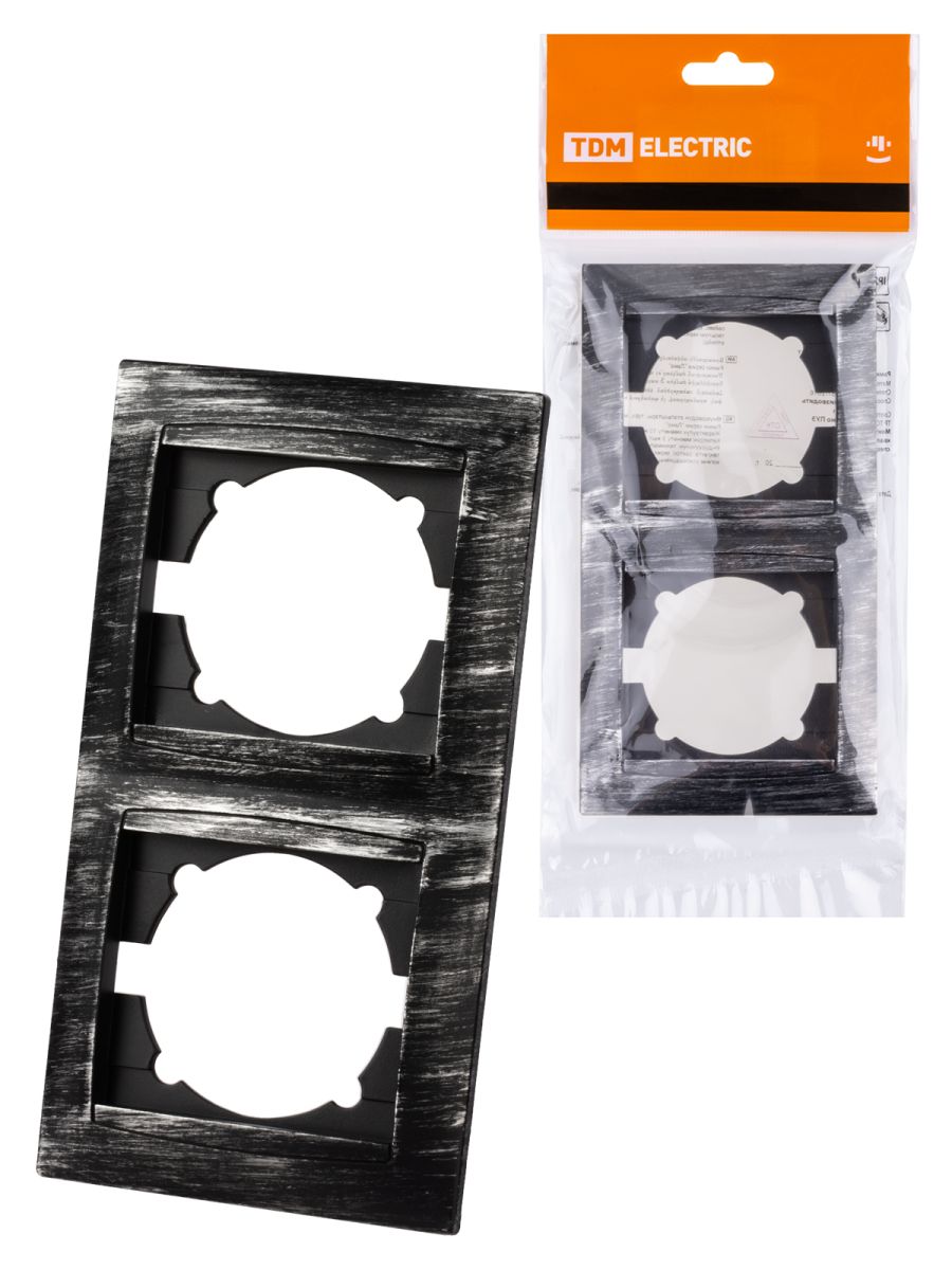 Рамка 2-х постовая вертикальная старинное серебро «Лама» TDM