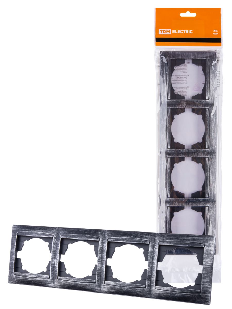 Рамка 4-х постовая горизонтальная старинное серебро «Лама» TDM