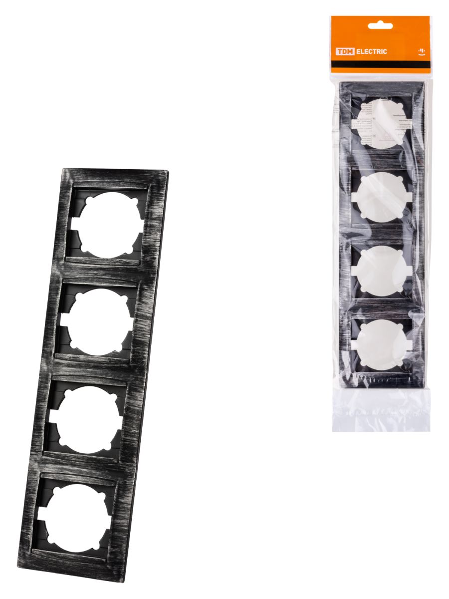 Рамка 4-х постовая вертикальная старинное серебро «Лама» TDM