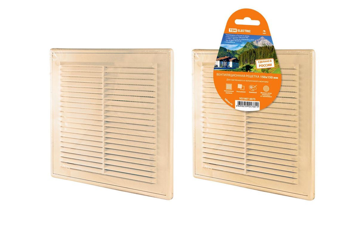 Читать все статьиРешетка разъемная с москитной сеткой, 150х150 «ЭКО» (беж.) TDM