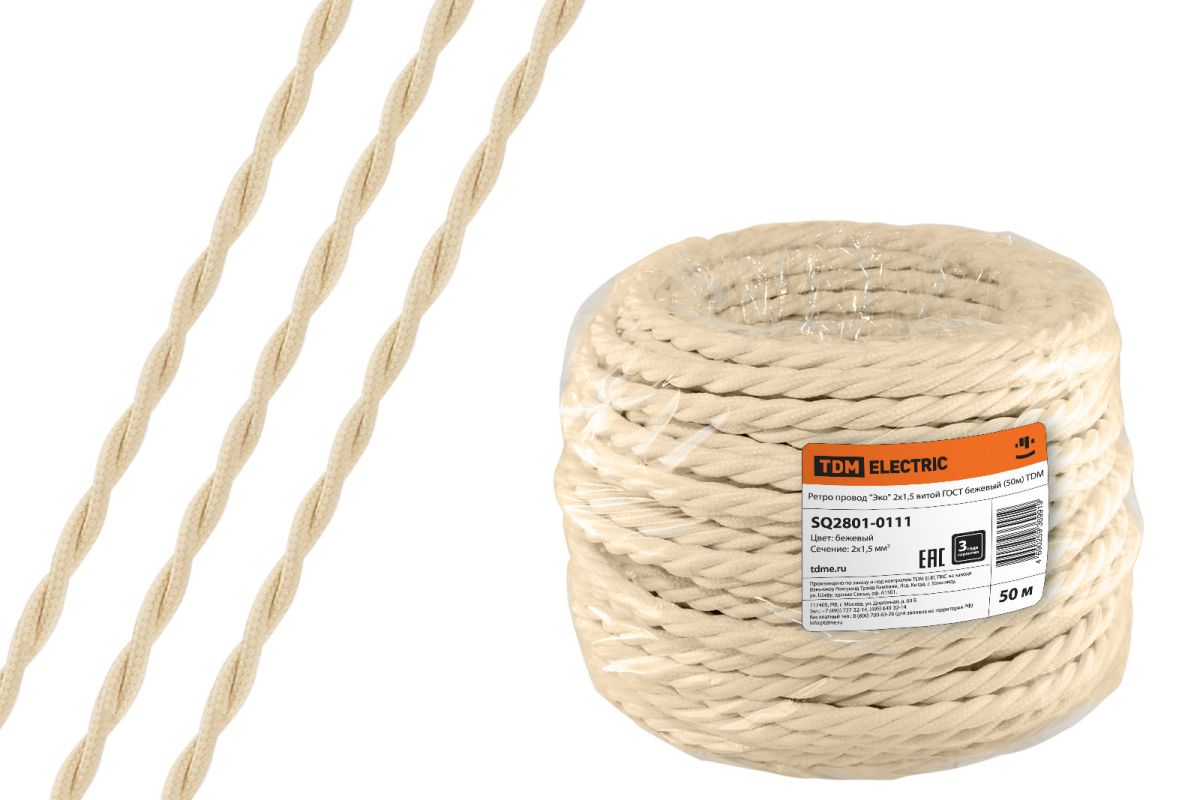 Ретро провод «Эко» 2х1,5 витой ГОСТ бежевый (50м) TDM
