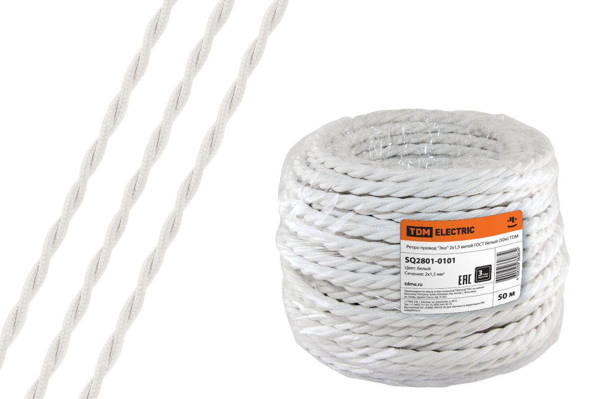 Читать все статьиРетро провод «Эко» 2х1,5 витой ГОСТ белый (50м) TDM