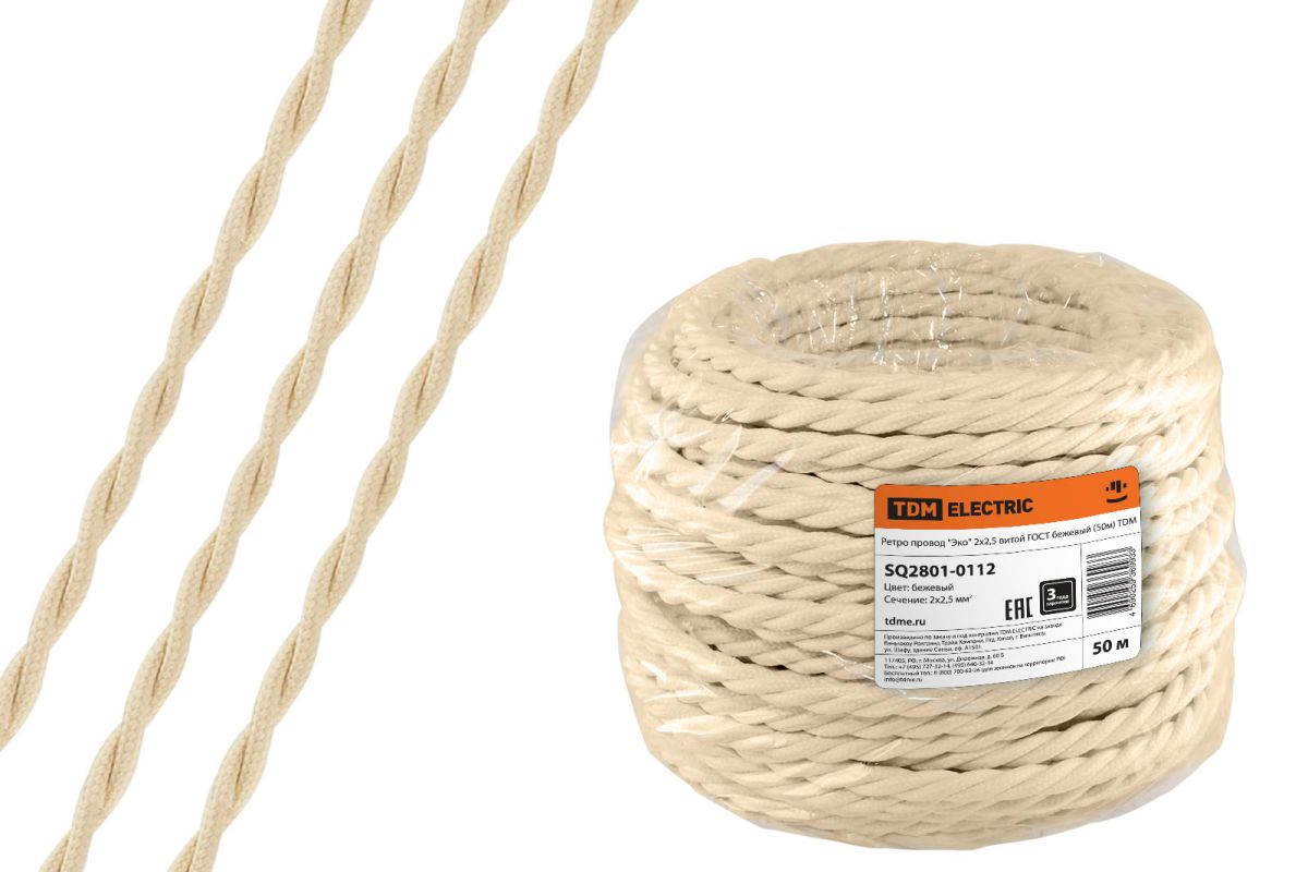 Читать все статьиРетро провод «Эко» 2х2,5 витой ГОСТ бежевый (50м) TDM