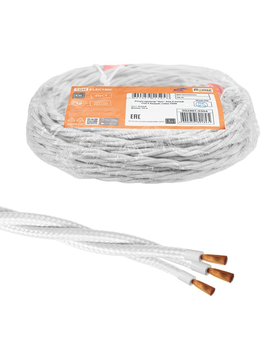 Ретро провод «Эко» 3х2,5 витой ГОСТ белый (10м) TDM