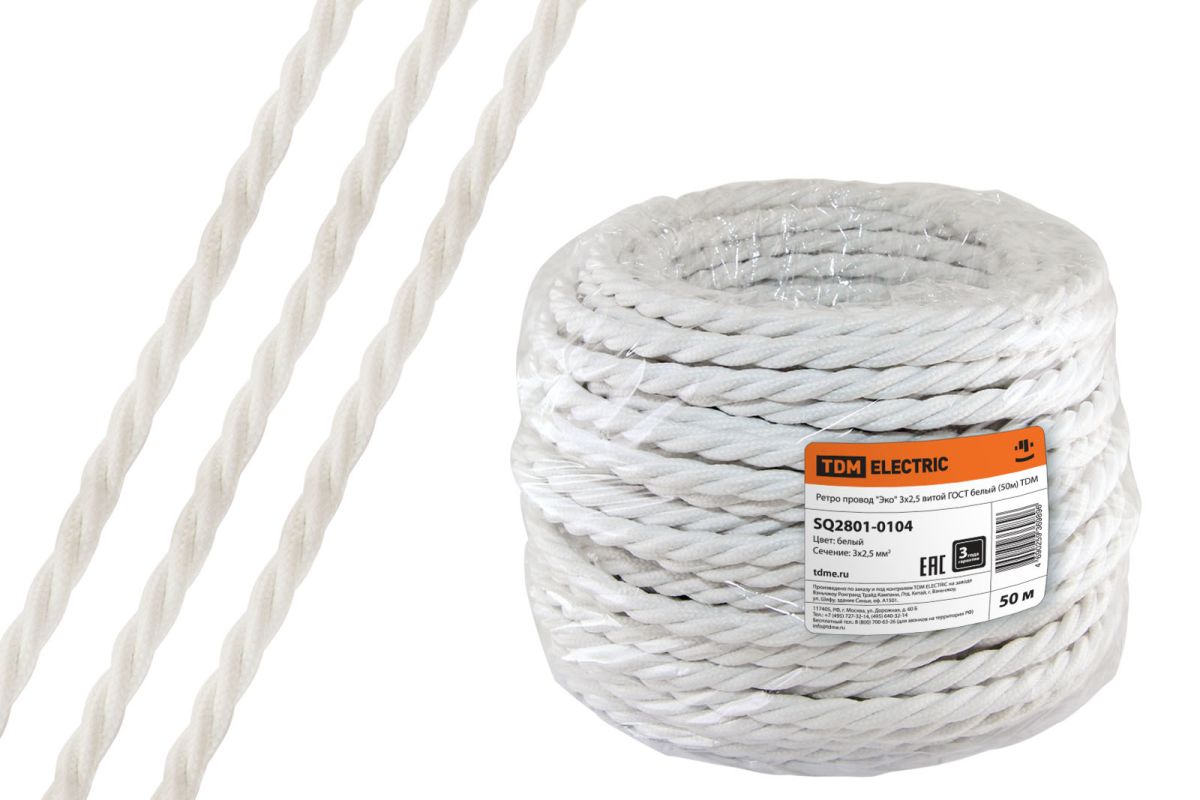 Читать все статьиРетро провод «Эко» 3х2,5 витой ГОСТ белый (50м) TDM