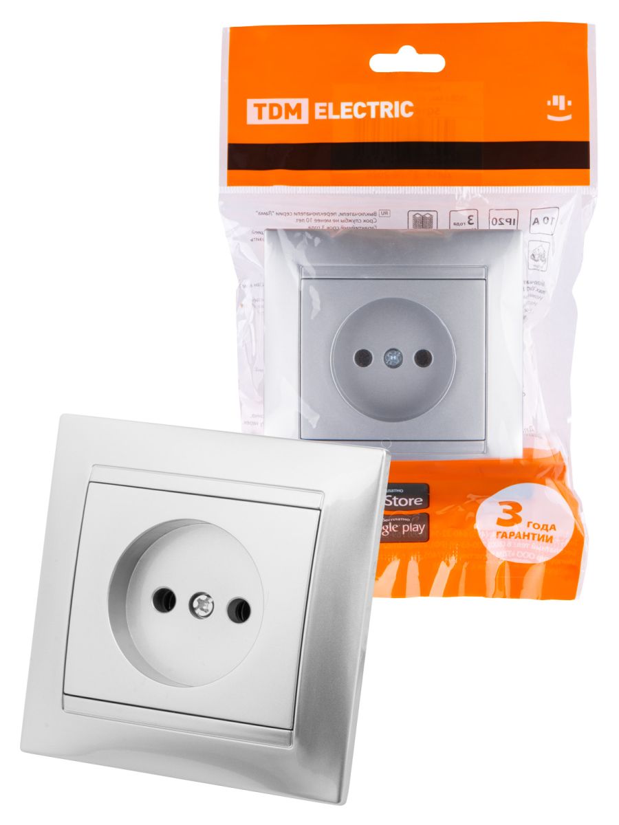 Розетка 2П 10А 250В серебр. металлик «Лама» TDM