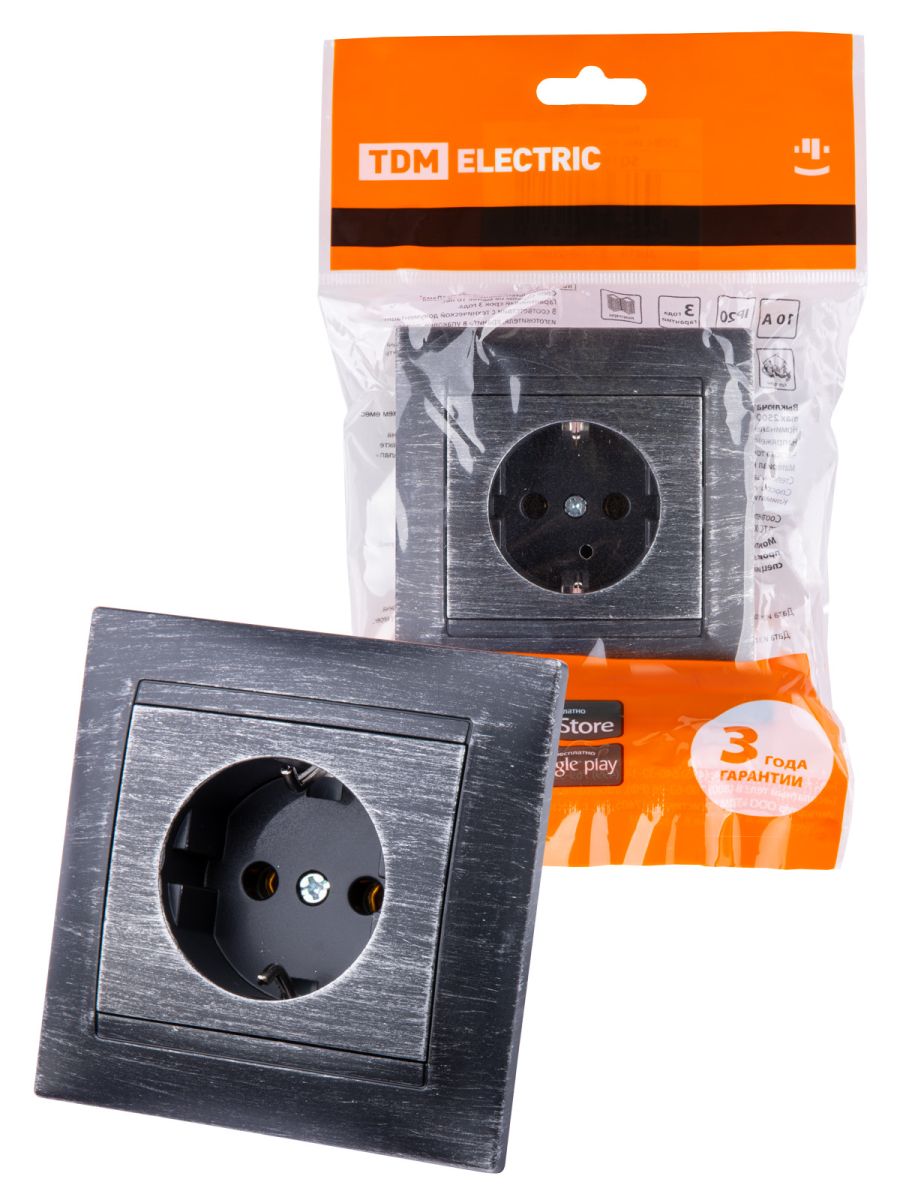 Розетка 2П+З 16А 250В старинное серебро «Лама» TDM