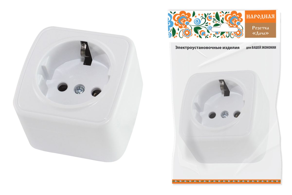 Читать все статьиРозетка 2П+З открытой установки IP20 16А, белая «Дача» Народная