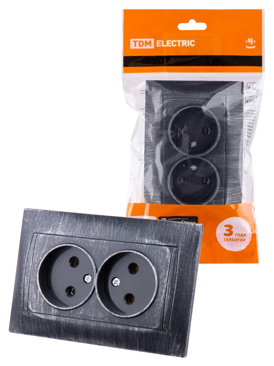 Розетка двойная 2П 10А 250В старинное серебро «Лама» TDM