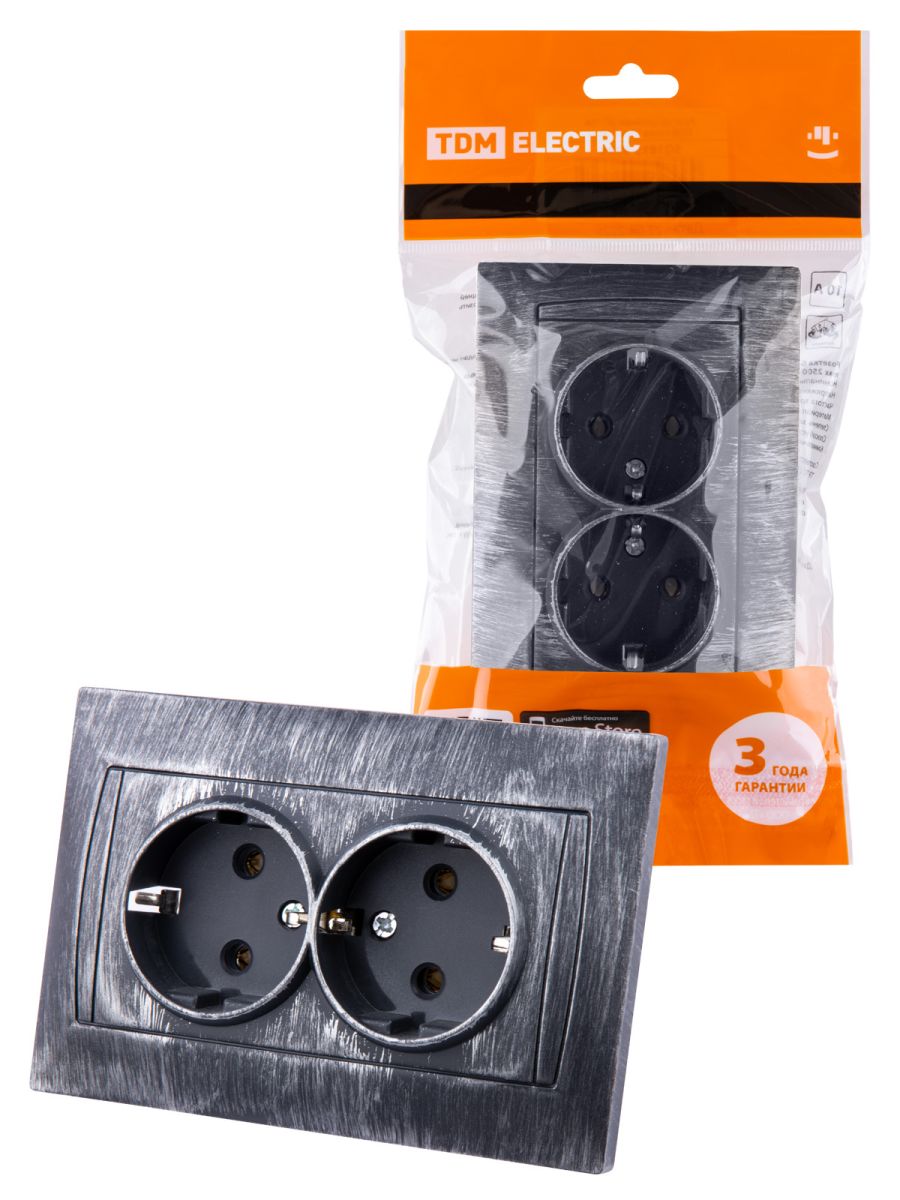 Розетка двойная 2П+З 16А 250В старинное серебро «Лама» TDM
