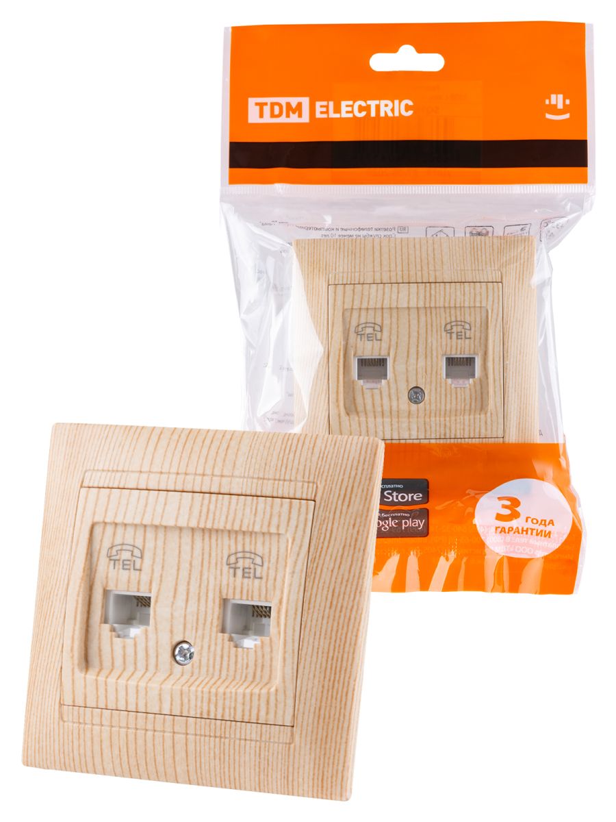 Розетка двойная телефонная RJ11 сосна «Лама» TDM
