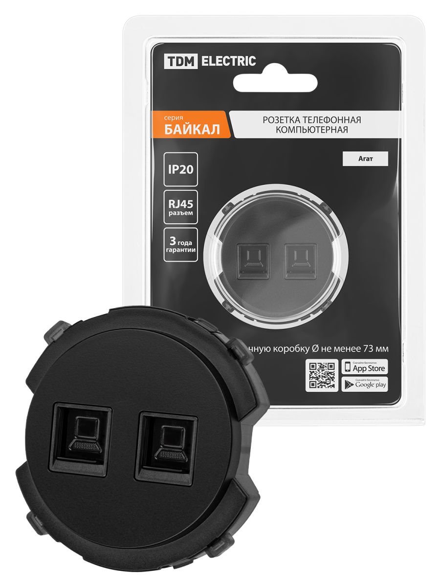 Розетка компьютерная двойная RJ45 агат, «Байкал» TDM