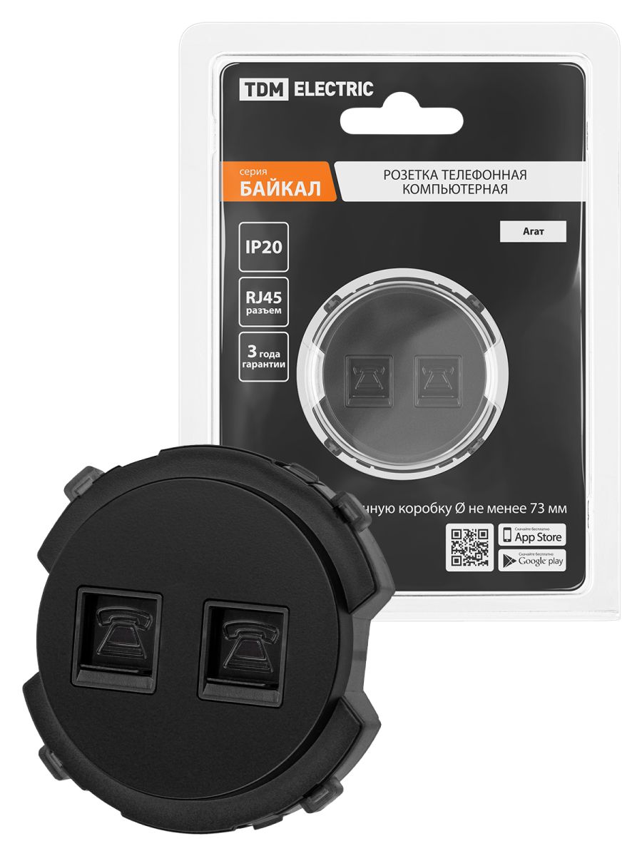 Розетка телефонная двойная RJ11 агат, «Байкал» TDM