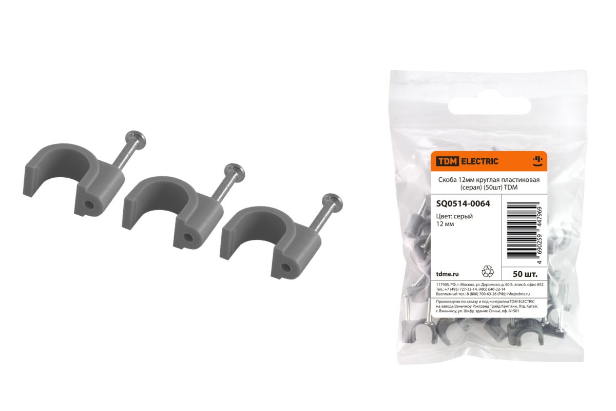 Скоба 12мм круглая пластиковая (серая) (50шт) TDM