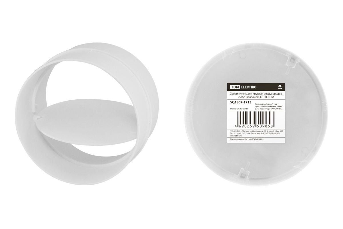 Соединитель для круглых воздуховодов с обр. клапаном, D100, TDM
